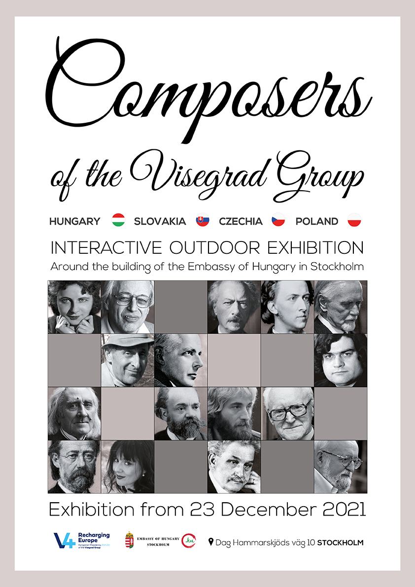 Welcome to the interactive street exhibition presenting worldwide recognised and loved composers from the Visegrad 4 countries: Hungary, Slovakia, Czechia and Poland.
